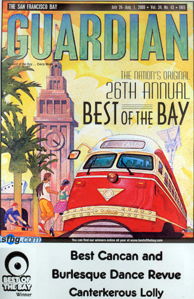 Throughout the late 90s, The Cantankerous Lollies performed in a diverse number of West Coast venues, including many of San Francisco’s top nightclubs (such as Bimbo’s, The Fillmore, The Great American Music Hall, as well as The San Francisco Museum of Natural History). In 1997 The Cantankerous Lollies were the first troupe ever to perform at the Miss Exotic World Pageant. Under Harvest’s direction, the Lollies won “Best Dance Troupe” two years in a row. They later earned a star in the Exotic World Museum’s Hall Of Fame.